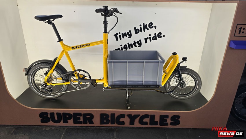 platzsparendes Abstellen kann man die Box einfach einklappen. Dank der 20-Zoll-Räder bleibt das „Carrie“ auch bei voller Beladung agil und wendig in der Handhabung. Unterstützung kommt vom Bosch-Performance-Line-Motor mit 545-Watt-Akku.